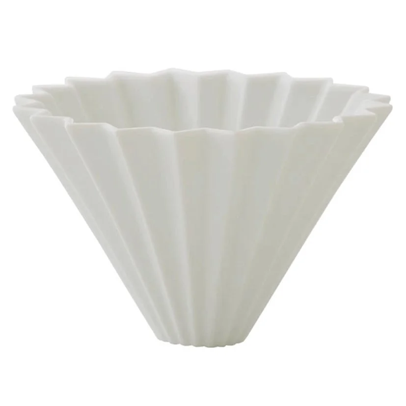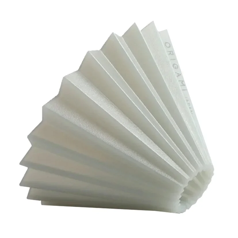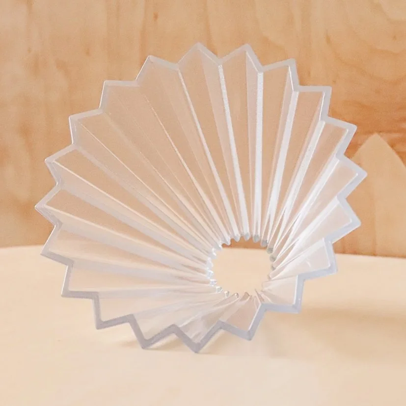 El gotero ORIGAMI Air destaca por extraer el sabor genuino de los granos de café con precisión y estabilidad. Fabricado con material de resina AS, es notablemente más liviano, aproximadamente un 50% menos que sus homólogos cerámicos convencionales. Destaca como característica clave su estructura en forma de pliegues segmentados verticalmente, facilitando la extracción del café más fino con un tiempo de preparación óptimo.